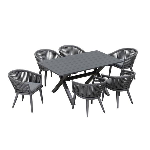 5-Piece Aluminum All-Weather PE Rattan Rectangular Outdoor Dining Set with Cushion, Gray