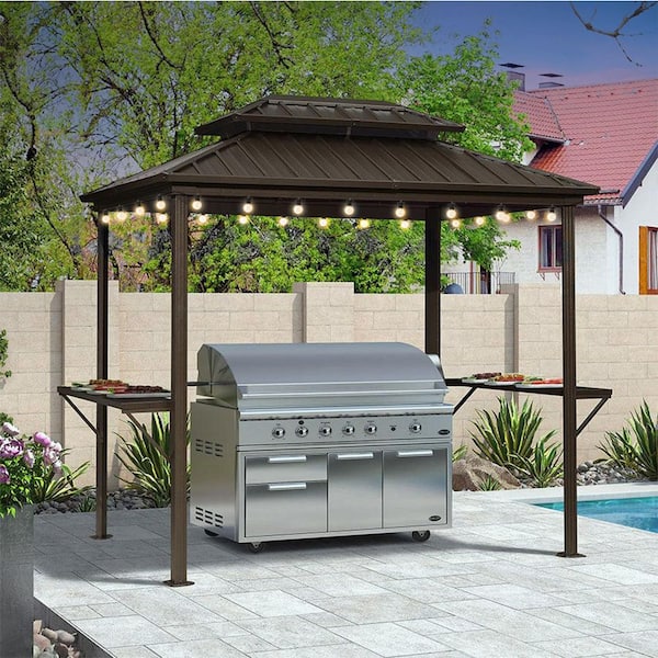 6 ft. x 8 ft. Hardtop Grill Gazebo for Patio Aluminum Barbecue Shelter Gazebo, Hooks, Shelves Double Tiered 24-Lights