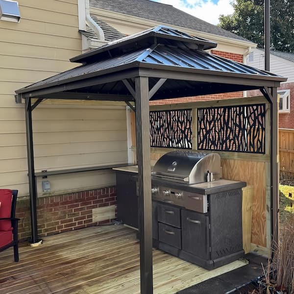 6 ft. x 8 ft. Hardtop Grill Gazebo for Patio Aluminum Barbecue Shelter Gazebo with Hooks and Shelves Double Tiered Brown