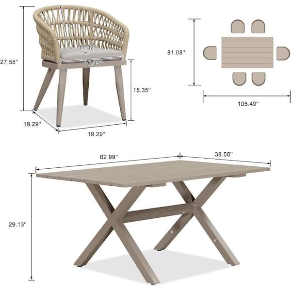7-Piece Aluminum All-Weather PE Rattan Rectangular Outdoor Dining Set with Cushion, Champagne