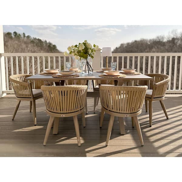 7 Piece Aluminum All-Weather PE Rattan Rectangular Outdoor Dining Set with Cushion, Champagne