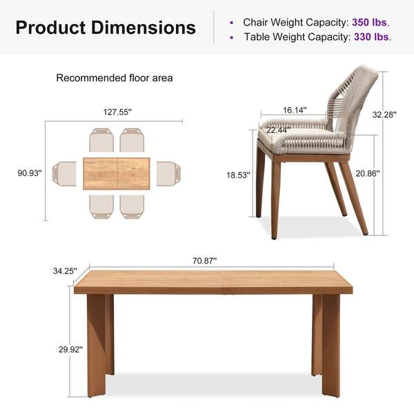 7-Piece Aluminum Outdoor Dining Set Teak Patio Furniture Set Wicker Table and Chairs with Cushions
