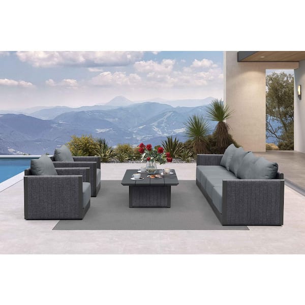 7 Pieces Patio Seating Sofas Aluminum Furniture Outdoor Couch Sectional Set with Cushions and Aluminum Table Gray
