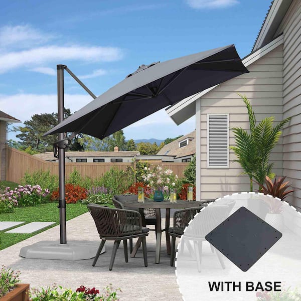 8 ft. Square Aluminum Outdoor Patio Cantilever Umbrella Offset 360-Degree Rotation Umbrella with Base Plate, Gray