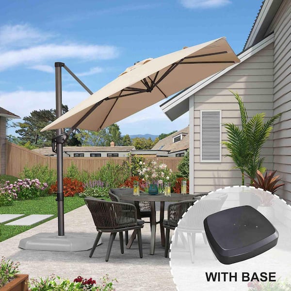 8 ft. Square Aluminum Outdoor Patio Cantilever Umbrella Offset 360-Degree Rotation Umbrella with Wheels Base, Beige