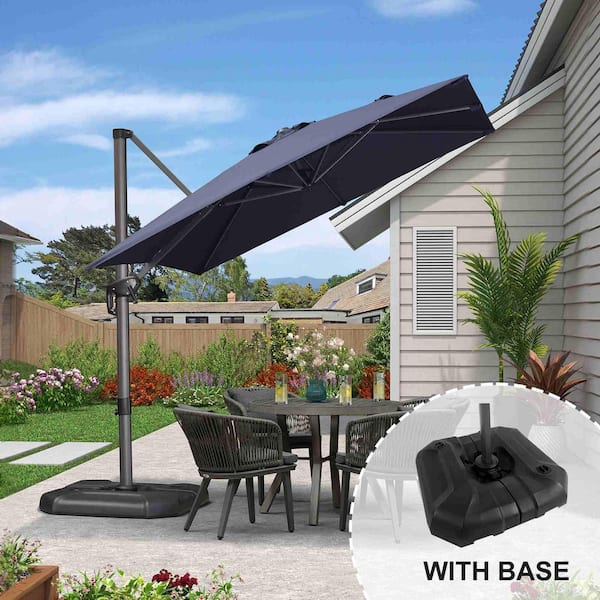 8 ft. Square Aluminum Outdoor Patio Cantilever Umbrella Offset 360° Rotation Umbrella with Base, Navy Blue