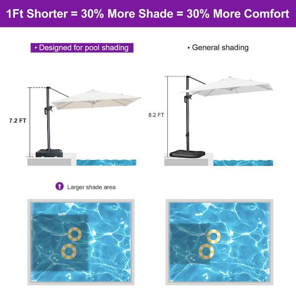8 ft. Square Patio Umbrella Offset Outdoor Cantilever Umbrella for Poolside with 360° Rotation in Beige