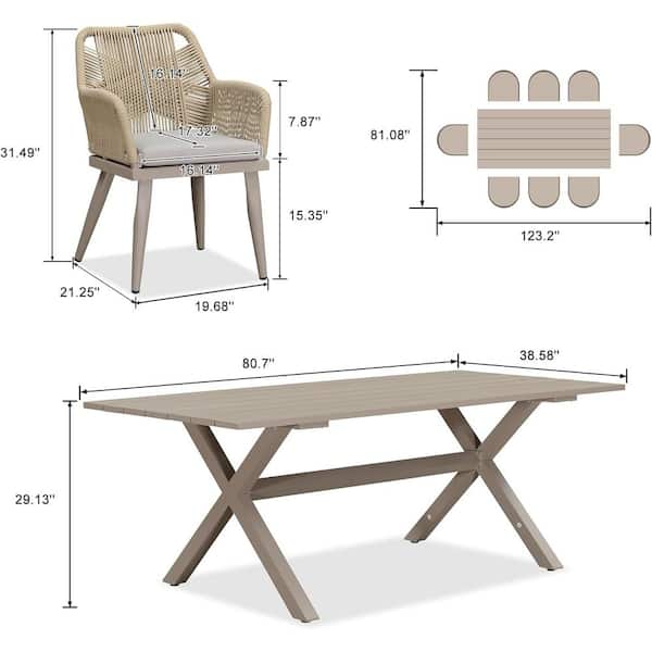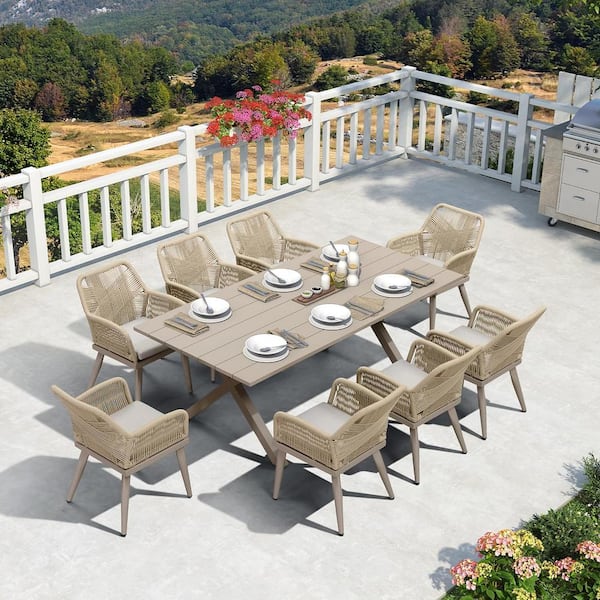 9-Piece Aluminum All-Weather PE Rattan Rectangular Outdoor Dining Set with Cushion, Champagne