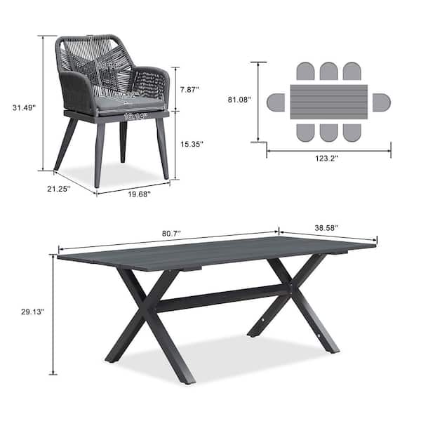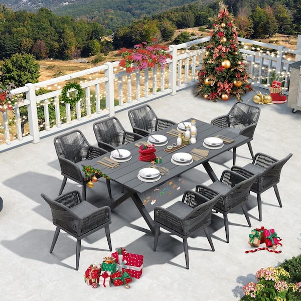 9-Piece Aluminum All-Weather PE Rattan Rectangular Outdoor Dining Set with Cushion, Grey