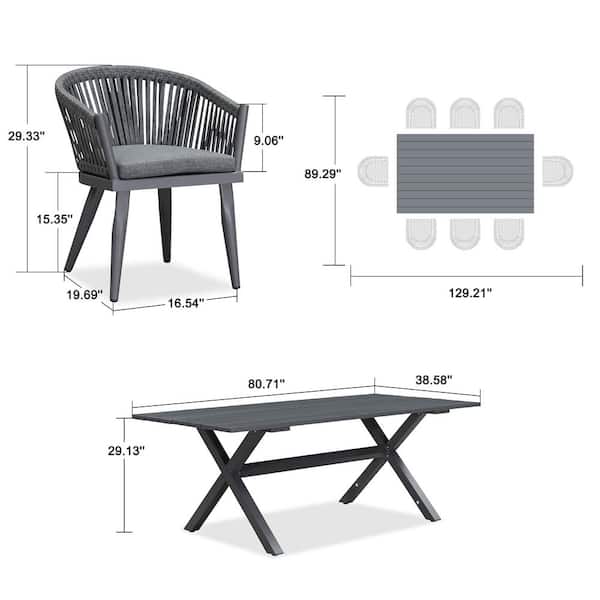9-Piece Aluminum All-Weather PE Rattan Rectangular Outdoor Dining Set with Cushion, Grey