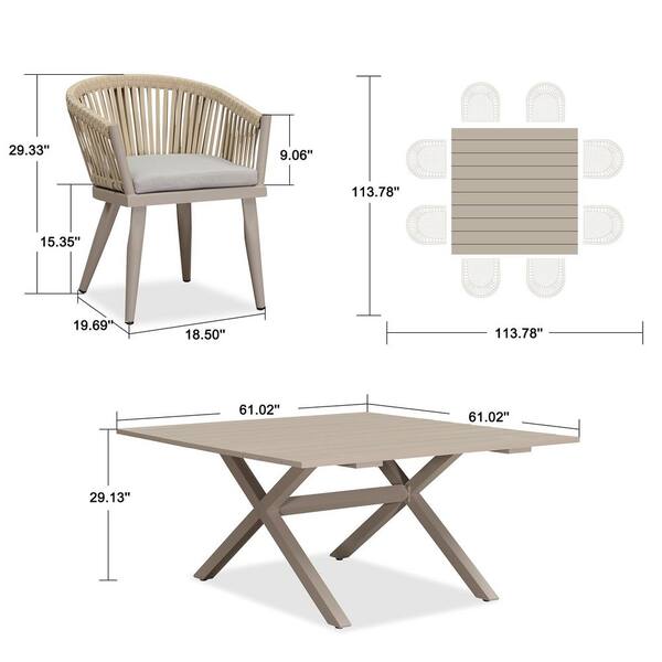 9 Piece Aluminum All-Weather PE Rattan Square Outdoor Dining Set with Cushion, Champagne