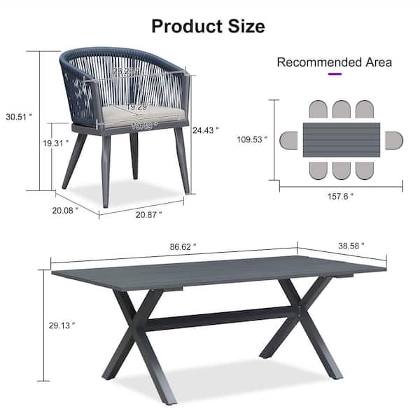 9-Piece Aluminum All-Weather Wicker Outdoor Dining Set with Cushion, Grey and Navy