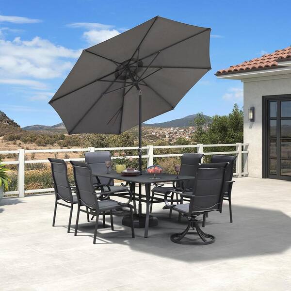 9 ft. Octagon Aluminum Auto-Tilt Outdoor Patio Market Umbrella in Gray
