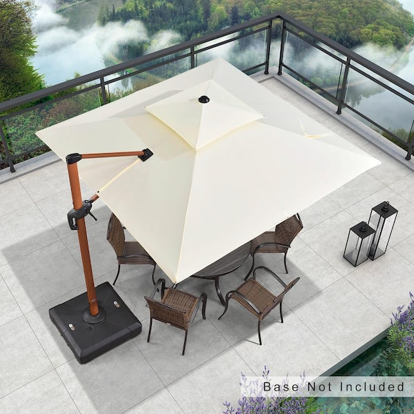 9 ft. Square All-aluminum 360-Degree Rotation Wood pattern Cantilever Offset Outdoor Patio Umbrella in Cream
