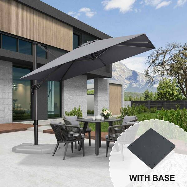 9 ft. Square Aluminum Outdoor Patio Cantilever Umbrella Offset 360-Degree Rotation Umbrella with Base Plate, Light Gray
