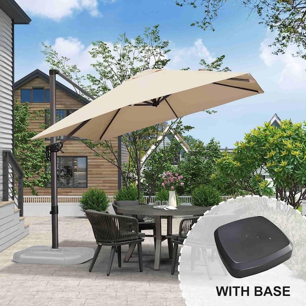 9 ft. Square Aluminum Outdoor Patio Cantilever Umbrella Offset 360-Degree Rotation Umbrella with Wheels Base, Beige