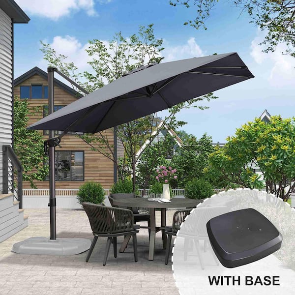 9 ft. Square Aluminum Outdoor Patio Cantilever Umbrella Offset 360-Degree Rotation Umbrella with Wheels Base, Gray