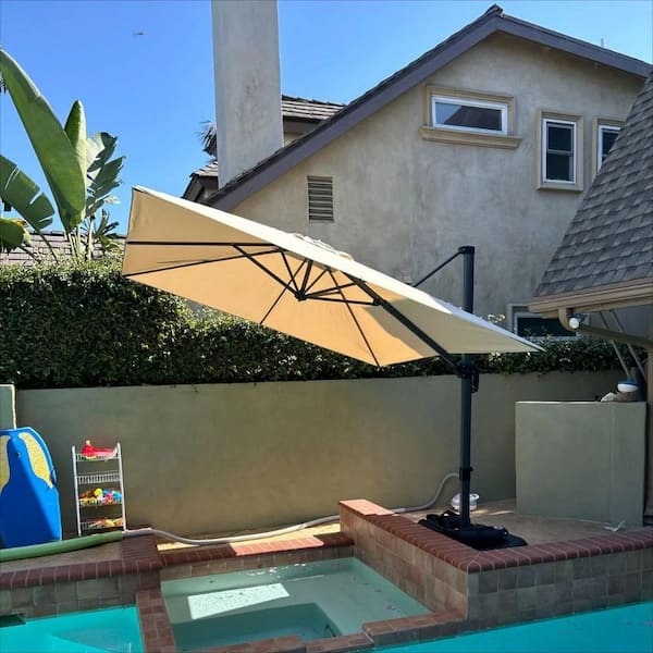 9 ft. Square Aluminum Outdoor Patio Cantilever Umbrella Offset 360° Rotation Umbrella with Base, Beige