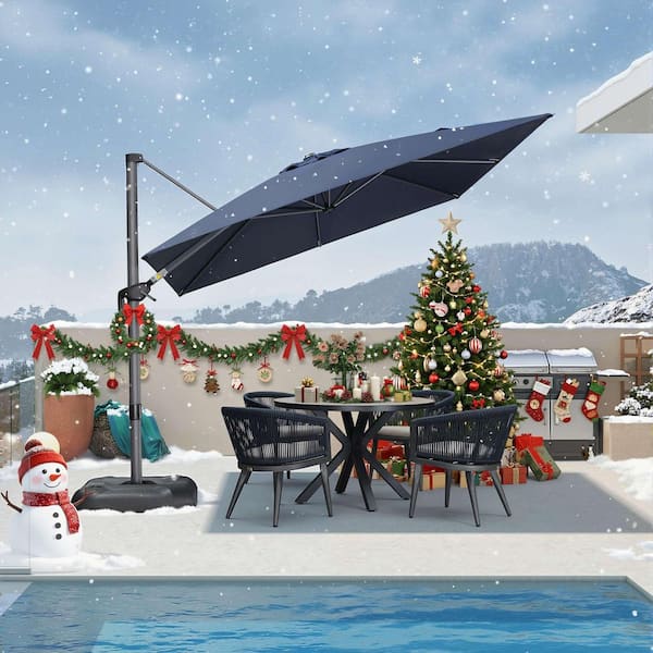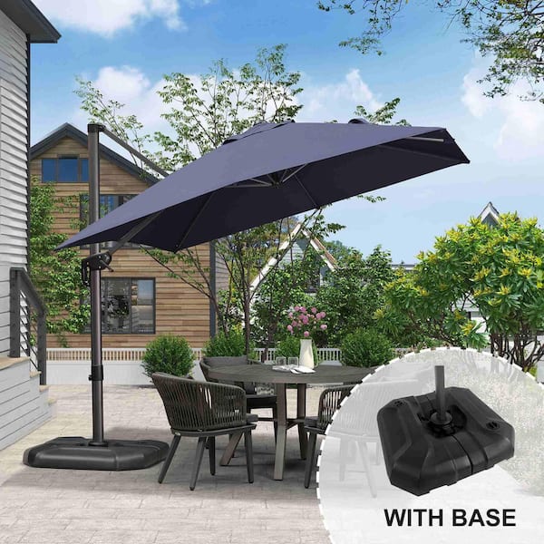 9 ft. Square Aluminum Outdoor Patio Cantilever Umbrella Offset 360° Rotation Umbrella with Base, Navy Blue