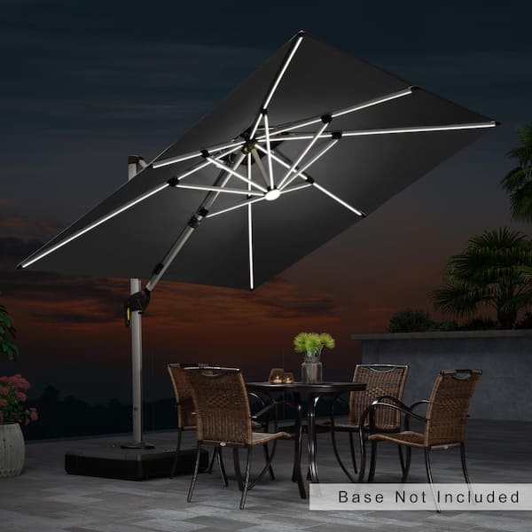 9 ft. Square Solar Powered LED Patio Umbrella Outdoor Cantilever Umbrella Heavy-Duty Sun Umbrella in Black