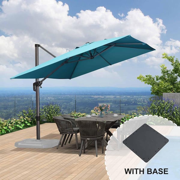 9 ft. x 11.5 ft. Aluminum Outdoor Cantilever Umbrella 360-Degree Rotation Umbrella with Base Plate, Turquoise Blue