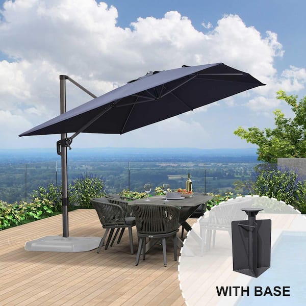 9 ft. x 11.5 ft. Aluminum Outdoor Patio Cantilever Umbrella 360-Degree Rotation Umbrella with Base in Ground, Navy Blue