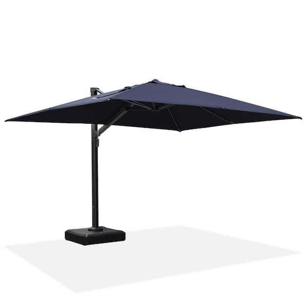 9 ft. x 12 ft. 2-Tier Aluminum Cantilever 360° Rotation Patio Umbrella with Base, Navy Blue