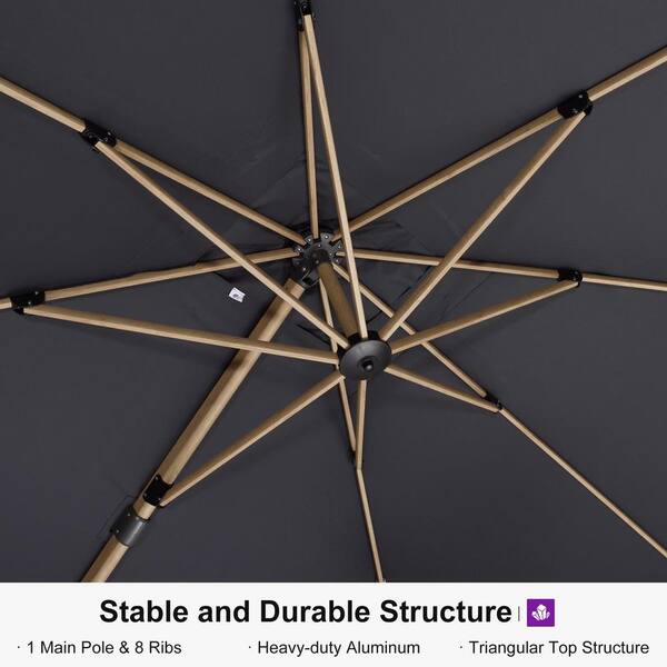 9 ft. x 12 ft. Outdoor Cantilever Patio Umbrella Teak Finished Offset 360° Rotation Umbrella with Base, Gray