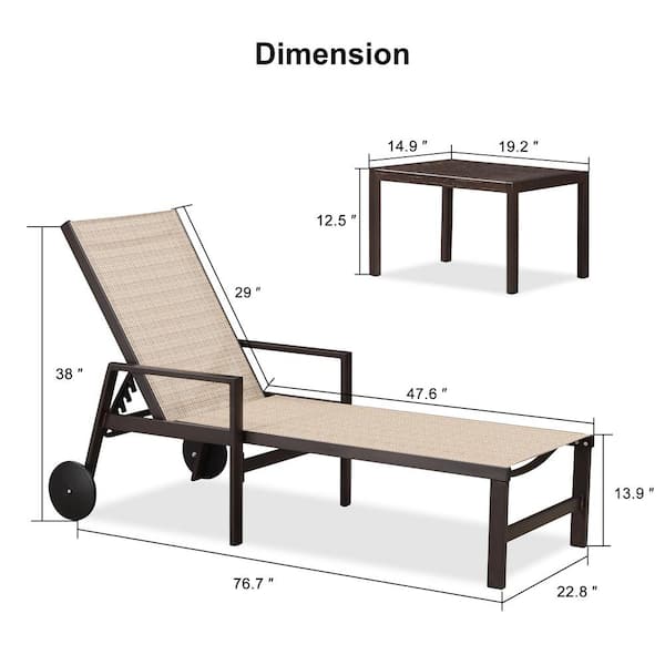 Aluminum Bronze Frame Metal Outdoor Chaise Lounge Chair with Wheels and Armrests Recliner Chair, Light Tan