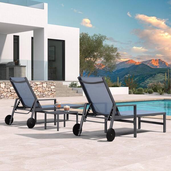 Aluminum Dark Grey Frame Metal Outdoor Chaise Lounge Chair with Wheels and Armrests Recliner Chair, Indigo