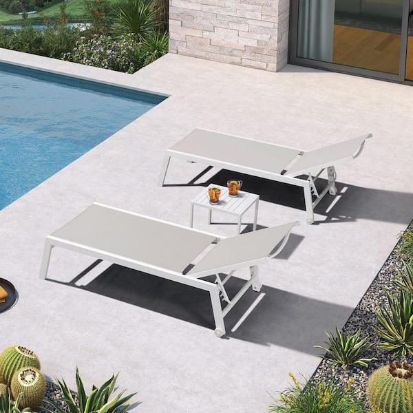 Aluminum White Frame Outdoor Chaise Lounge Patio Lounge Chair with Side Table and Wheels Extra Large, Flaxen