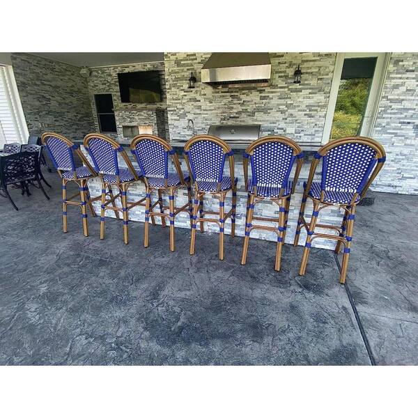 French Stackable Wicker Outdoor Bar Stools Bar Height in Royal Blue (2-Pack)