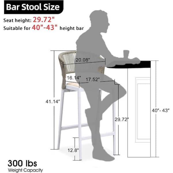 Modern Aluminum Low Back Rattan Bar Height Outdoor Bar Stool with Backrest and White Cushion (4-Pack)