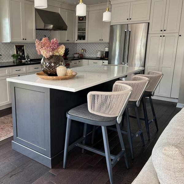 Modern Aluminum Outdoor Bar Stool Magnalium Button Rope Kelley Patio Bar Stool with Backrest and Cushion (Set of 2)