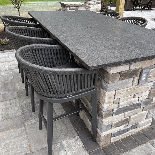 Modern Aluminum PE Rattan Bar Height Outdoor Bar Stool with Back and Grey Cushion (4-Pack)
