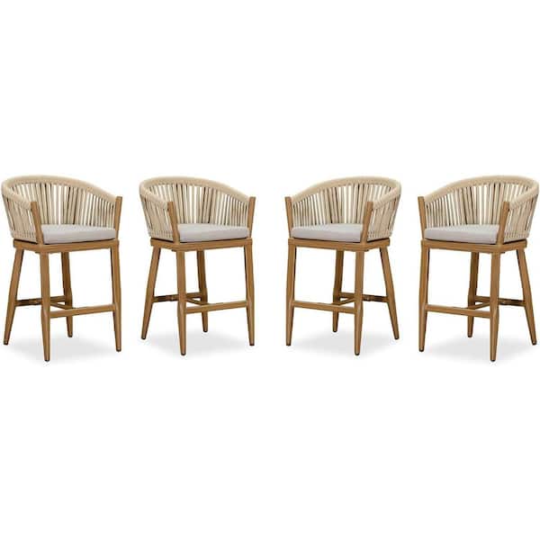 Modern Aluminum PE Rattan Counter Height Outdoor Bar Stool with Back and Beige Cushion (4-Pack)