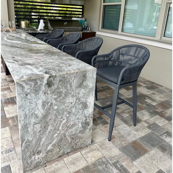 Modern Aluminum Rattan Bar Height Outdoor Bar Stool with Back and Grey Cushion (2-Pack)