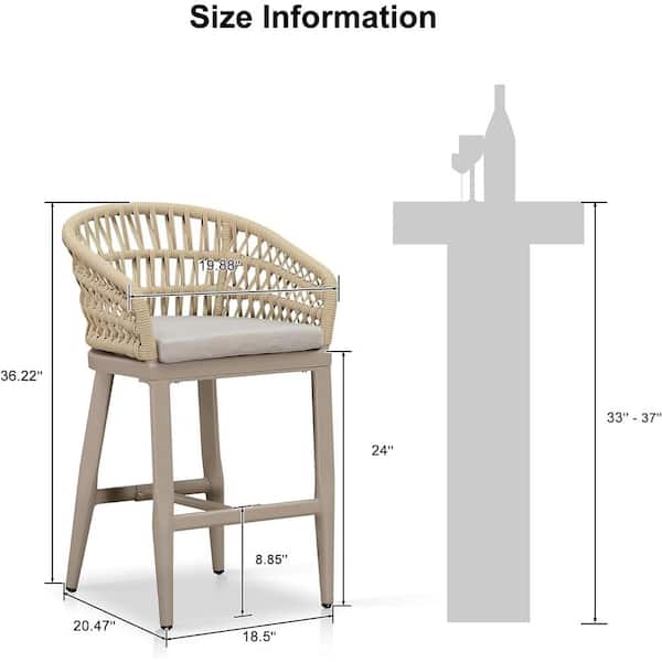 Modern Aluminum Rattan Counter Height Outdoor Bar Stool with Back and Beige Cushion (4-Pack)