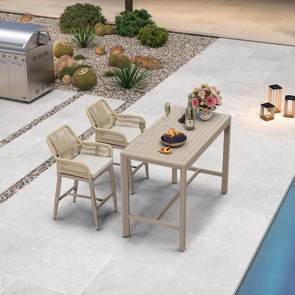 Modern Aluminum Rattan Counter Height Outdoor Bar Stool with Back and Beige Cushion (4-Pack)