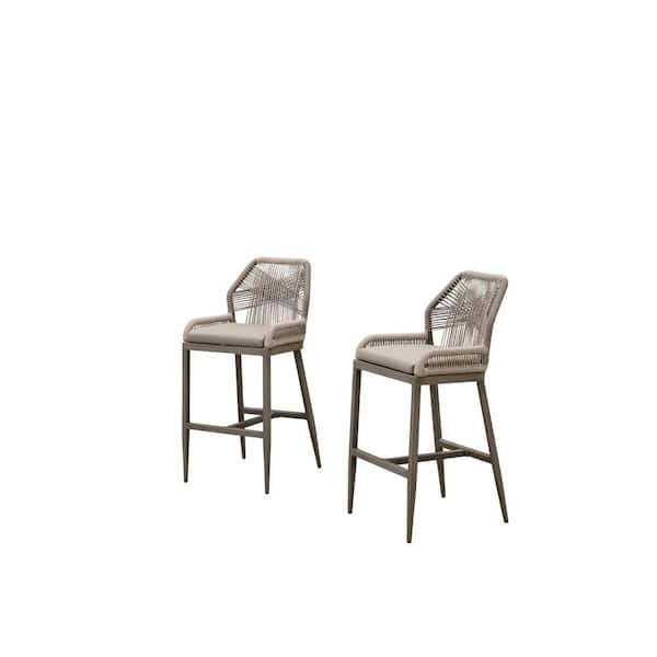 Modern Aluminum Twill Wicker Woven Counter Height Outdoor Bar Stool with Back and Sunbrella Taupe Cushion (2-Pack)