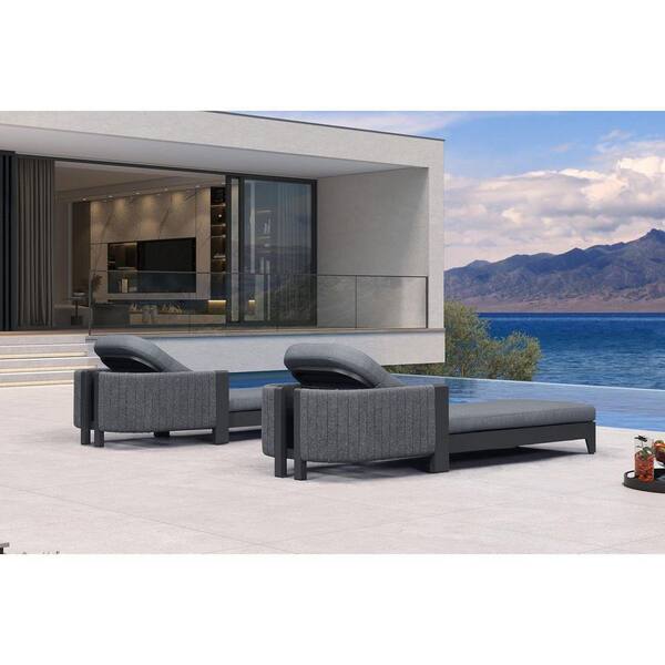 Outdoor Chaise Lounge Chairs Set of 2 with Cushion Aluminum Poolside Sun Chair Adjustable Back, Moon Basalt