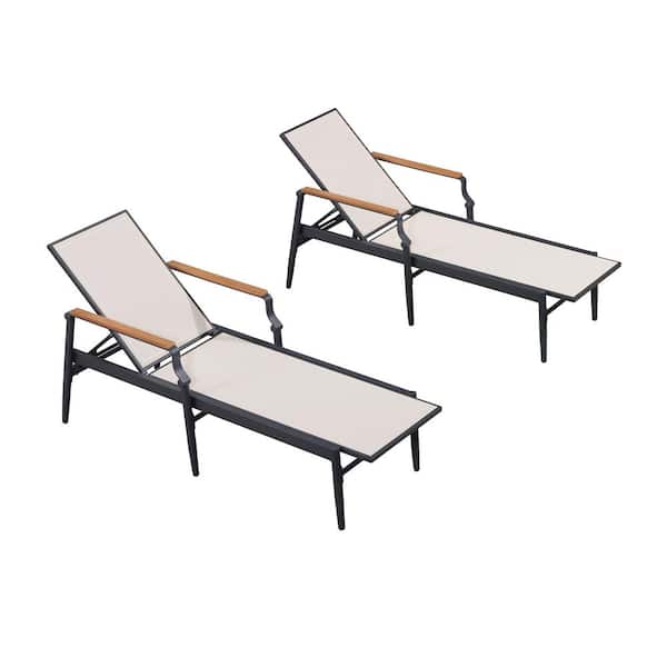 Outdoor Lounge Chaise Patio Pool Lounger Aluminum Chairs with Wooden Armrest for Outside Backyard, Beige