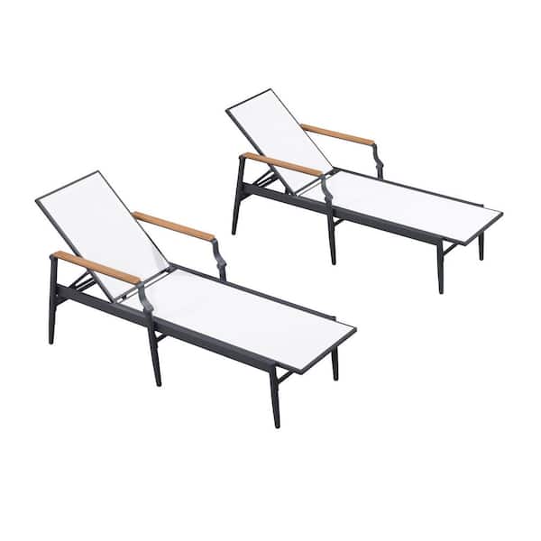 Outdoor Lounge Chaise Patio Pool Lounger Aluminum Chairs with Wooden Armrest for Outside Backyard, White