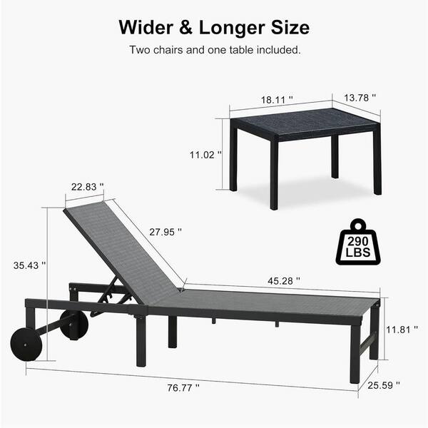 Outdoor Metal Chaise Lounge Chairs Set with Wheels for Beach Patio Reclining Sunbathing Lounger, Mixed Gray