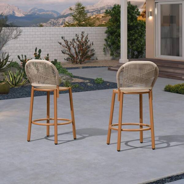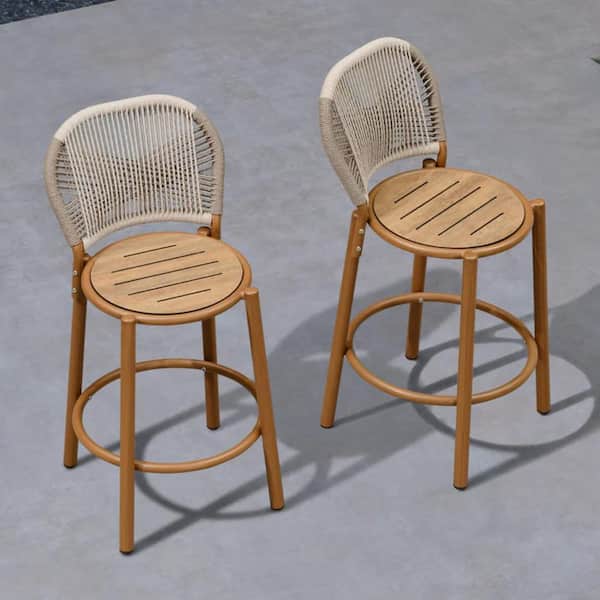 Patio Aluminum Armless Counter Height Outdoor Bar Stool Rattan Metal Seat for Back Proch Deck Accent Balcony
