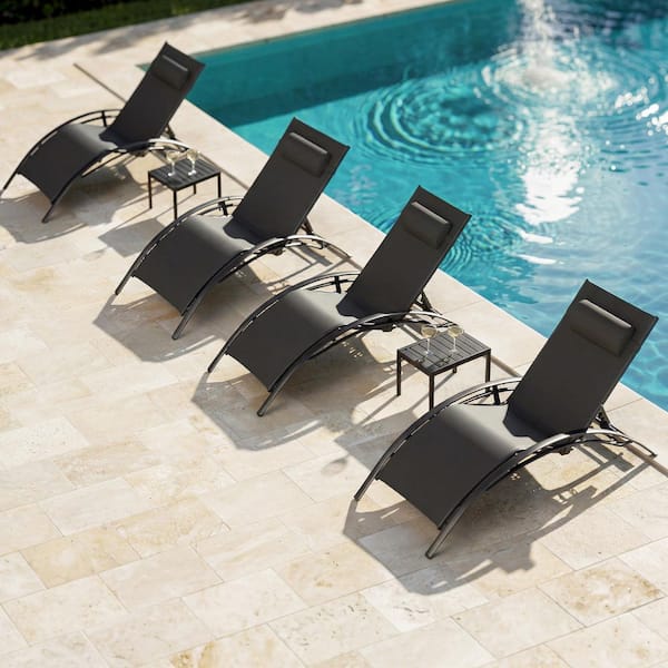 Patio Aluminum Outdoor Chaise Lounge Set Beach Pool Sunbathing Lawn Lounger Chair Side Table Included (Set of 4)