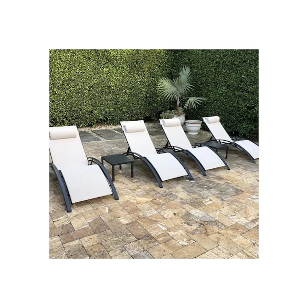 Patio Aluminum Outdoor Chaise Lounge Set Beach Pool Sunbathing Lawn Lounger Chair Side Table Included (Set of 4)