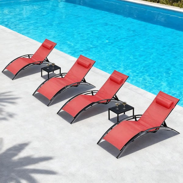 Patio Aluminum Outdoor Chaise Lounge Set Beach Pool Sunbathing Lawn Lounger Chair Side Table Included (Set of 4)