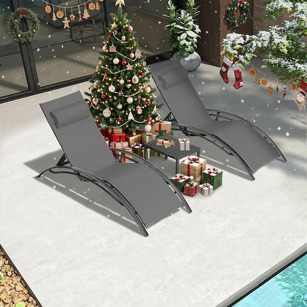 Patio Chaise Lounge Set Outdoor Beach Pool Sunbathing Lawn Lounger Recliner Chair Side Table Included