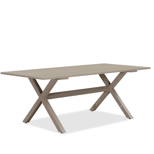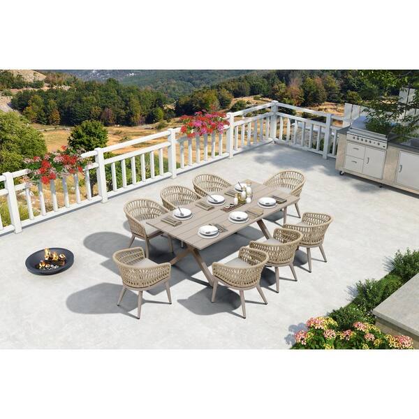 Patio Dining Table All-Weather Wicker Outdoor Patio Furniture All Aluminum Frame for Garden Backyard Deck, champagne